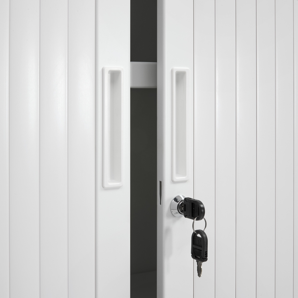 Legborden (in de zelfde kleur als de ombouw van de kast) zijn op elk gewenste hoogte te monteren en tevens geschikt voor A4 laterale hangmappen